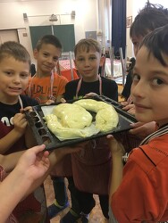 Co si upéct z plodů podzimu? Ano, jablečný štrúdl. I přes to, že jsme "klukovská" třída, pustili jsme se do přípravy a pečení jablečného štrúdlu v naší školní kuchyni. Práce nám šla od ruky, vše se vydařilo a my jsme si pochutnali! Jablka ze zahrádky nám přivezla maminka našeho spolužáka ze třídy, které moc děkujeme!