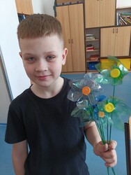 Žáci vyráběli výrobky z plastu na velikonoční jarmark. 🐣🌸 Využili plastové lahve, ze kterých tvořili jarní květiny a náramky. Při práci zapojili svou fantazii i zručnost a vznikly krásné a originální výrobky, které potěšili návštěvníky velikonočního jarmarku. ♻️🎨