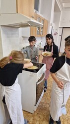 Výborné palačinky s ovocem jsme si společně připravili během pracovních činností. Procvičili jsme si vážení surovin, zdvojnásobení dávky, šlehání, pečení, krájení ovoce a zdobení. Musíme uznat, že se kluci činili a napekli opravdu krásné kousky :-). Holky je ozdobily a nakonec si všichni náramně pochutnali... :-)